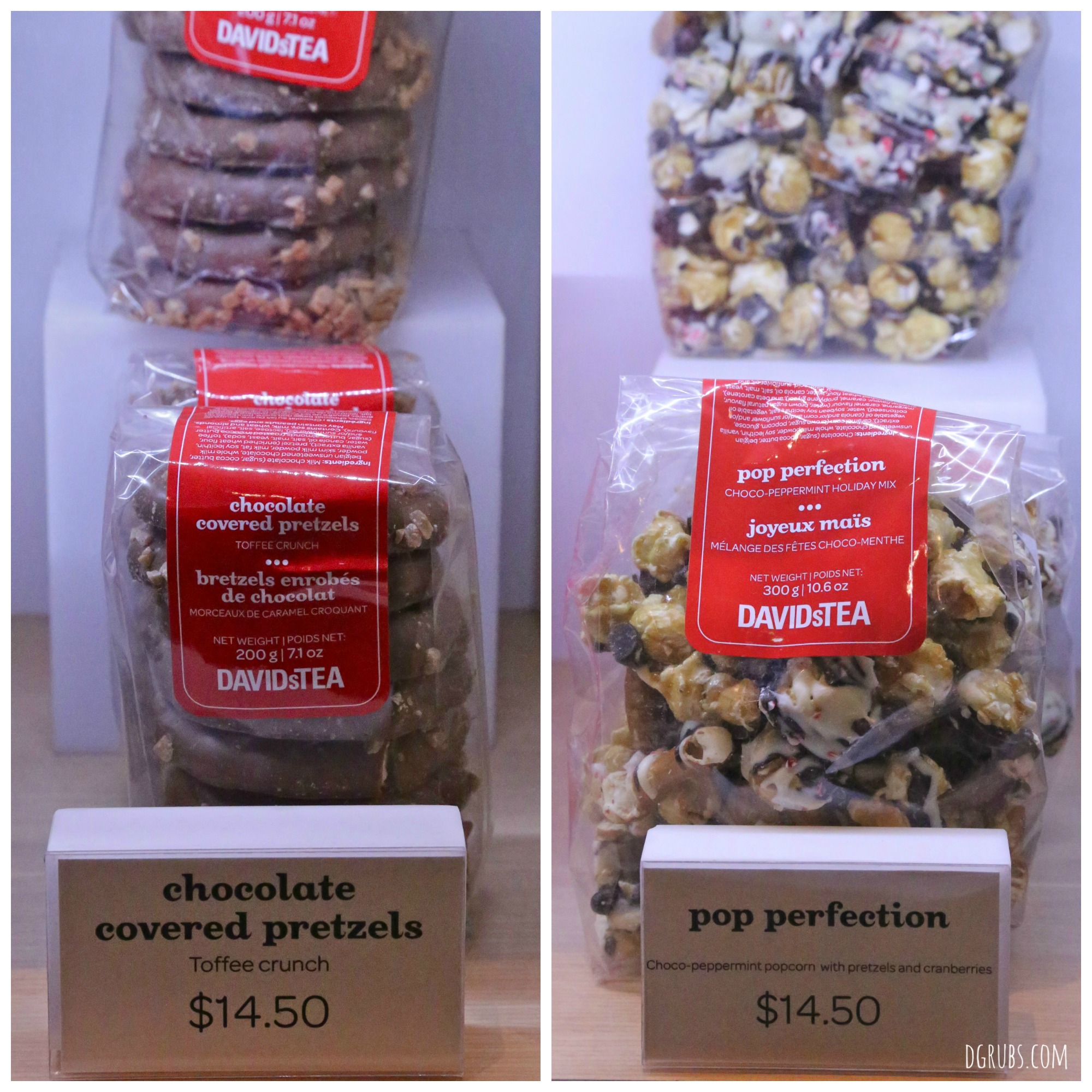 In addition to tea, the store carries a great selection of travel mugs, tea sets, accessories and delicious treats. Above are the chocolate covered pretzels ($14.50) and the pop perfections ($14.50)