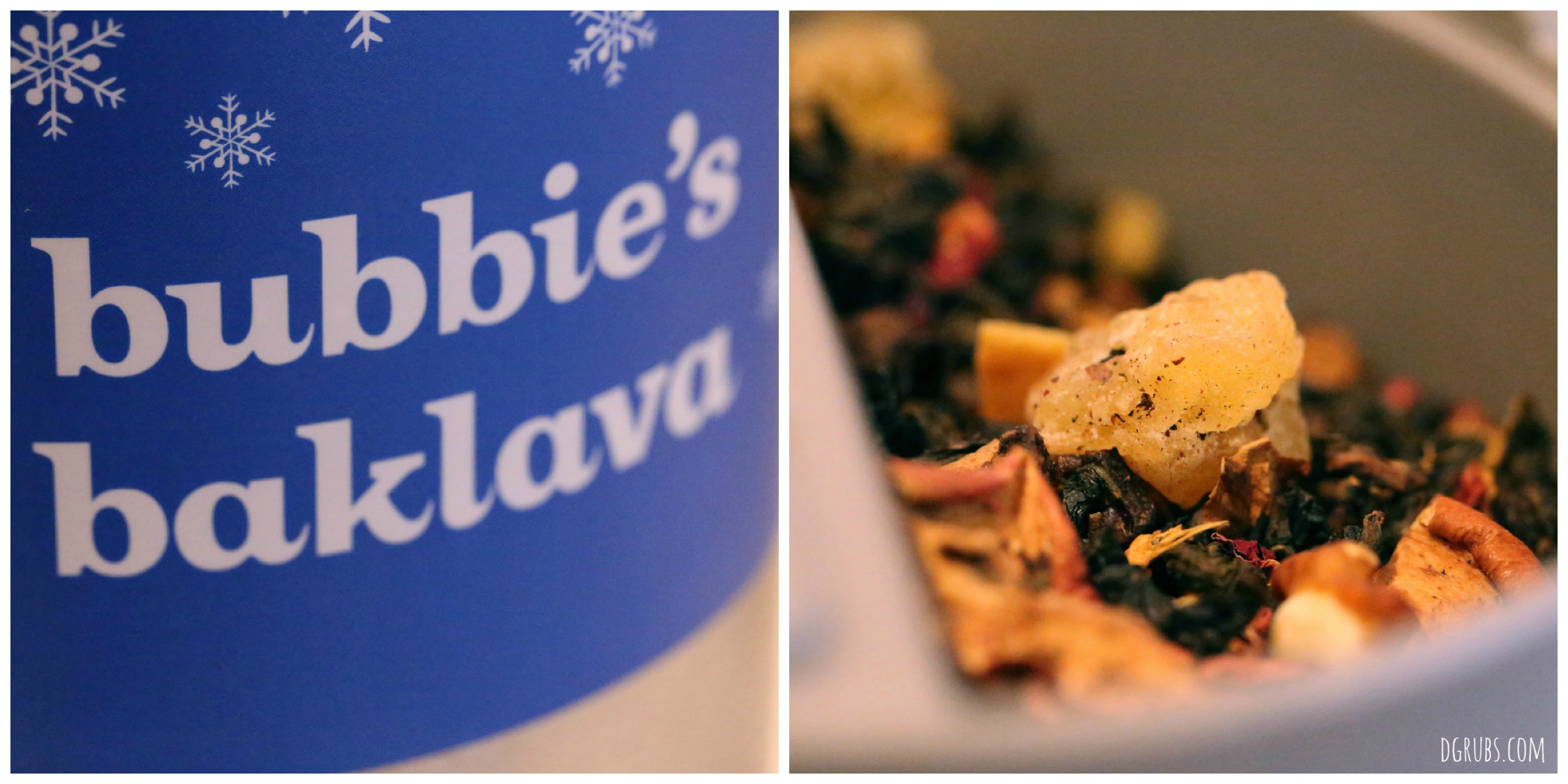 Bubbie’s Baklava (I just love the name!!) is oolong tea, with roasted chicory root, pineapple, papaya, cinnamon, walnuts, apple, ginger, roasted almonds, cardamom, rose pepper, pistachios, and rose blossom.